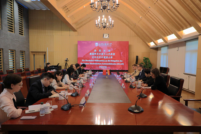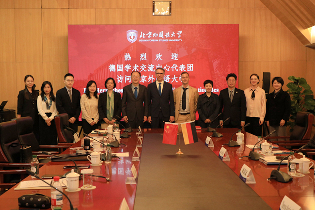 10月14日,德国学术交流中心(DAAD)秘书长凯·西克斯(Kai Sicks)一行访问最新bbin官方平台直营网站,北外校长、党委副书记贾文键会见代表团一行。