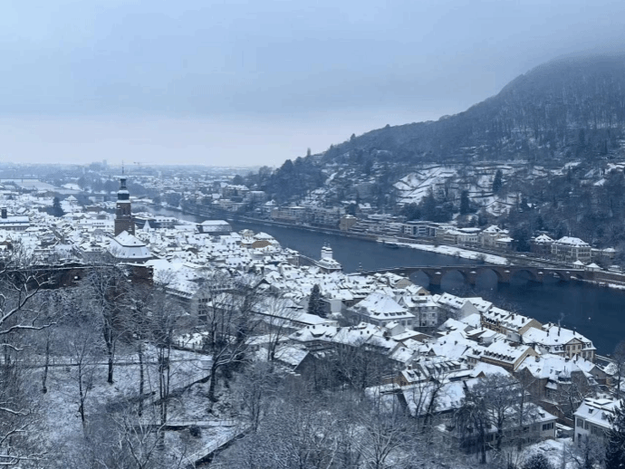 从2025年9月至今,我在海德堡亲历了其季节流转,从金黄灿烂的秋光,到皑皑白雪的冬色。四个多月的光景,随着内卡河的水无声流过,竟显得如此转瞬即逝。