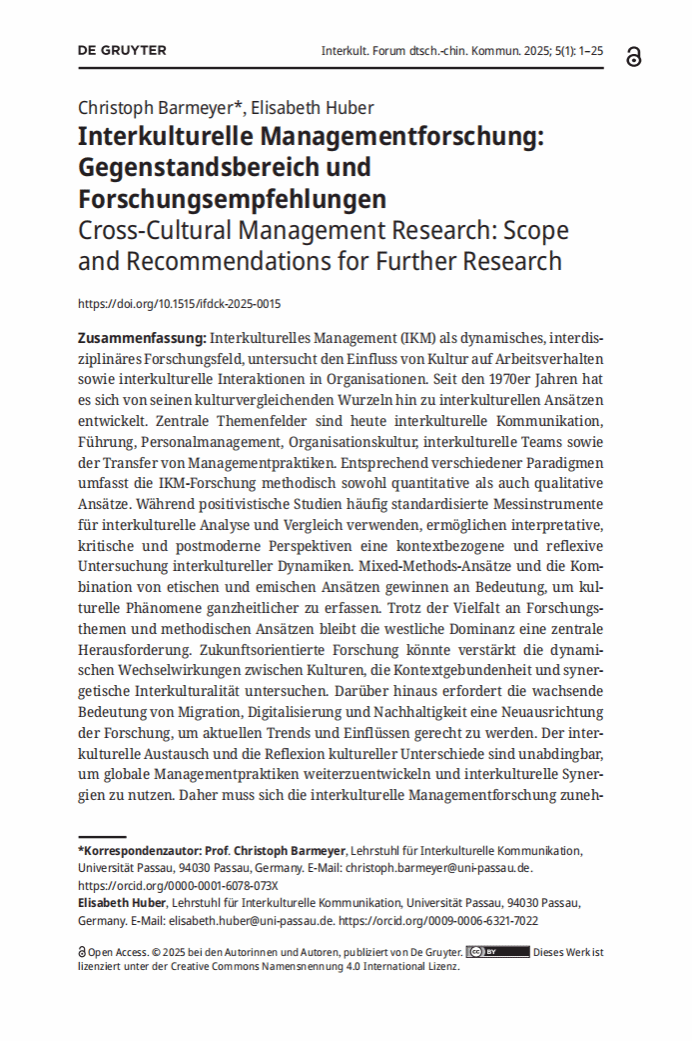 本刊主要关注中国和德语国家跨文化交流中的成功模式、机制以及存在的问题、误解与冲突,以科学的方法探寻原因及解决路径,贴近实践进行理论探讨,旨在以科学认识引导实践,从而更好地推动中国与德语国家人民之间的理解与合作。